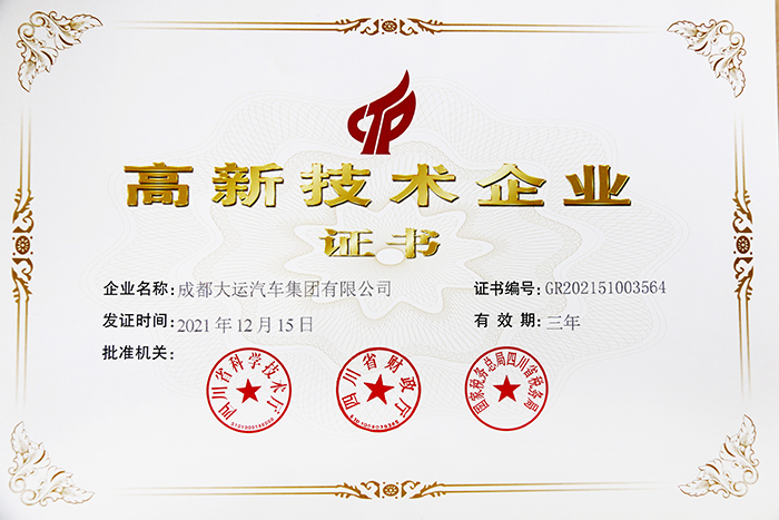 近日,成都大運(yùn)汽車集團(tuán)有限公司收到由四川省科學(xué)技術(shù)廳、四川省財(cái)政廳、國家稅務(wù)總局四川省稅務(wù)局聯(lián)合頒發(fā)的《高新技術(shù)企業(yè)證書》?!?/span>
